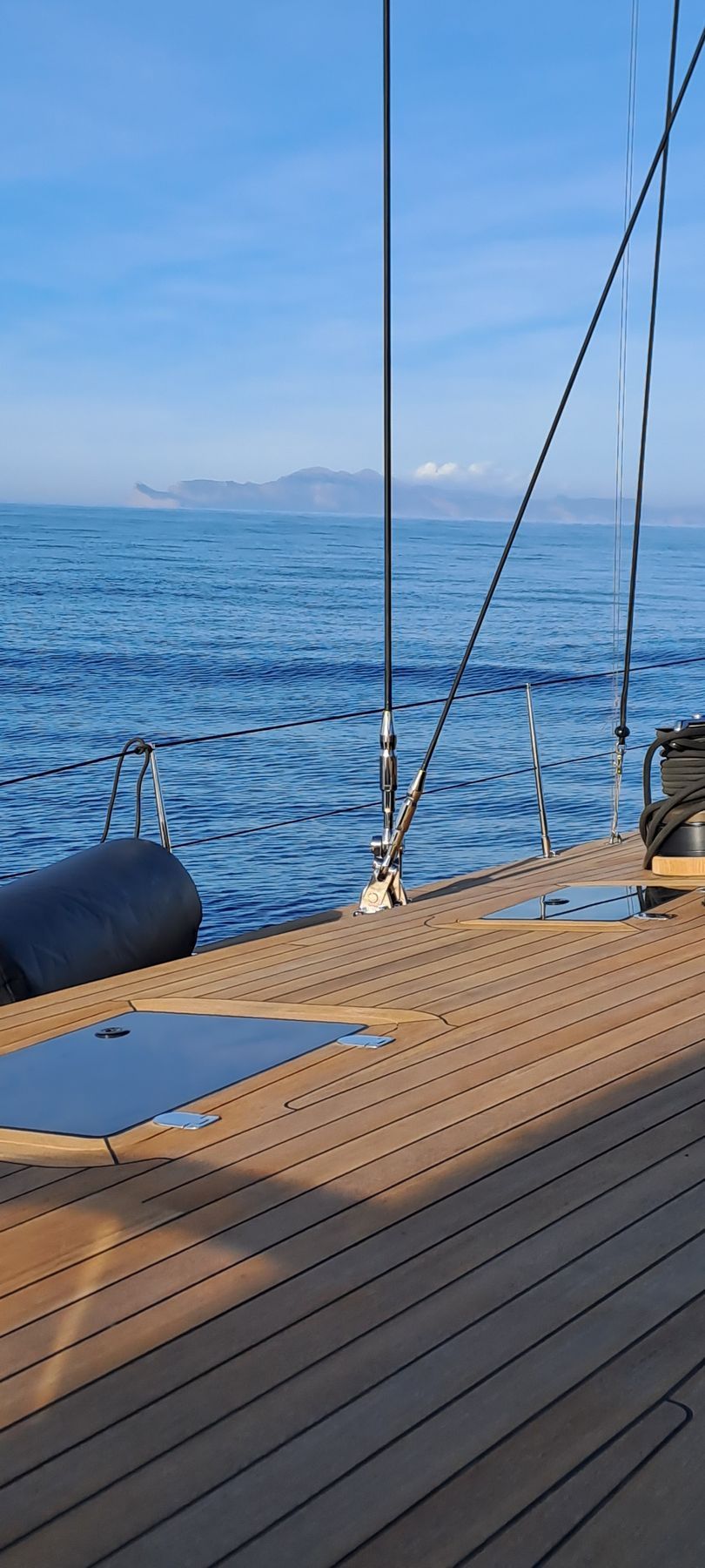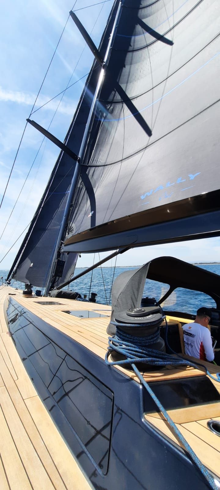 The deck layout reflects the Wally combination of maximum safety with maximum pleasure. As in every other Wally projects, most lines run under the deck so there is plenty of space to walk around in, without tripping. Large clear areas are open for sunbathing, protected from sea spray, while the crucial maneuvering areas are established in dedicated zones to eliminate inconvenience or danger for those not involved in sailing activity.